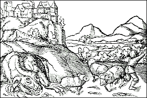 bowiem w załomach pewnej skały okrutnie srogi potwór, którego niektórzy