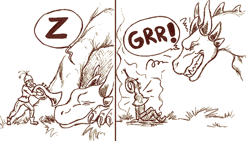 i znienacka trąbimy. Jeżeli smok ma słabe serducho, to padnie.