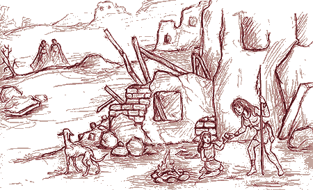 kłusem pobiegł w kierunku namiotu rozbitego w samym środku wioski.