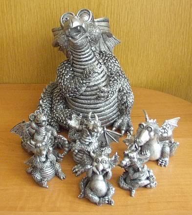 Niewielkie figurki smoków. Razem tworzą zabawną rodzinkę.