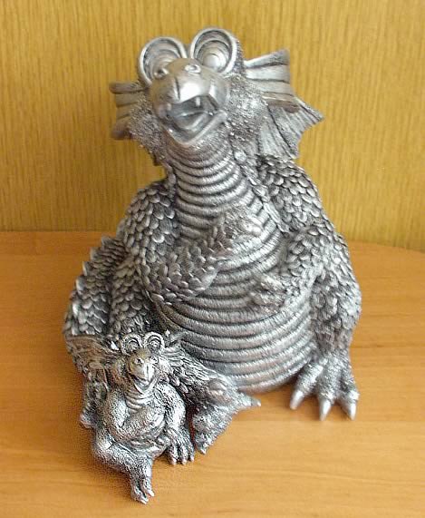 Niewielkie figurki smoków. Razem tworzą zabawną rodzinkę.