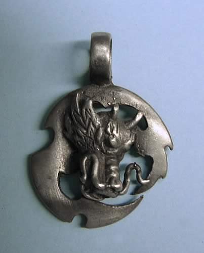 Wisiorek z motywem orientalnej smoczej głowy (typ 1) Wisiorek zakupiony w pawilonie nr 40 w przejściu podziemnym na skrzyżowaniu Marszłkowskiej i Al. Jerozolimskich Sklep sprowadza oryginalne wisiorki z Londynu cena 30 zł