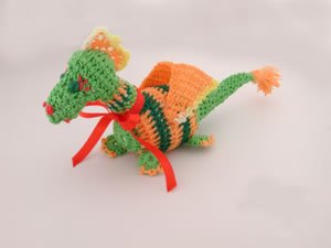 smoczek z włóczki - "wyszydełkowany" przez Ewę Białołęcką w czasie